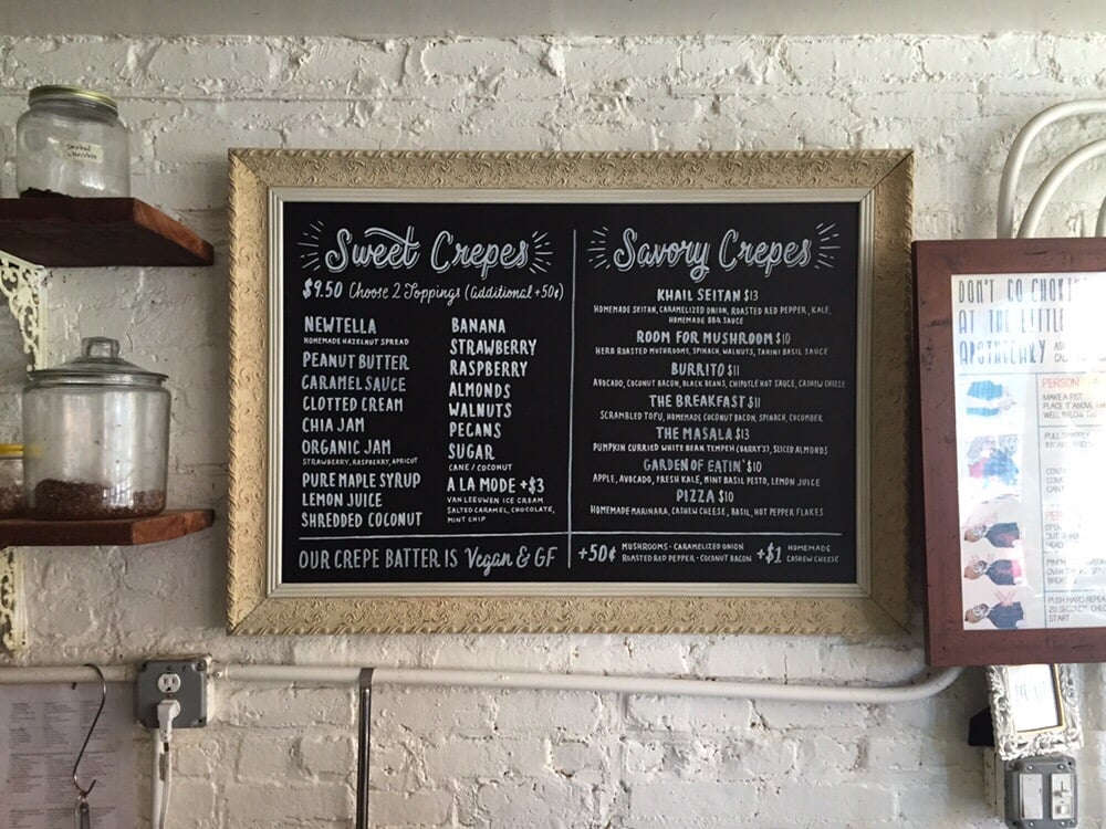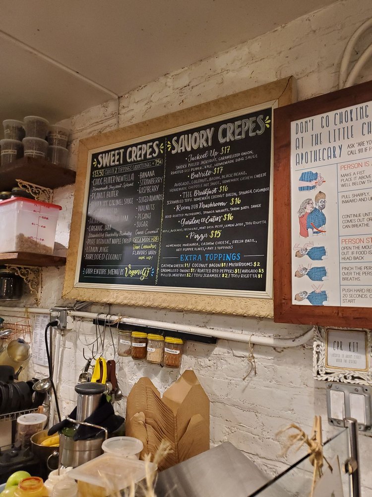 "Little Choc Apothecary" in Williamsburg, Brooklyn is a vegan gem offering a menu filled with savory and sweet crepes, all vegan and gluten-free. The ambiance is calming and welcoming, perfect for catching up with friends. The attentive and friendly servers enhance the overall dining experience. Customers rave about dishes like the Strawberry & Clotted Cream Crêpe and the Room For Mushroom, both offering delicious flavors at a moderate price point. The menu also includes smaller pastries perfect for a quick bite. The establishment is women-owned, offering a unique and inclusive atmosphere. With outdoor seating options and a cozy interior, "Little Choc Apothecary" is a must-visit for those looking to enjoy vegan delights in a trendy and intimate setting. Make sure to try their signature crepes and baked goods for a satisfying and delightful meal.